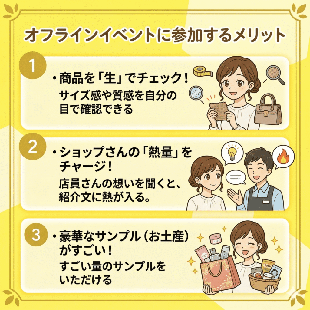 普段は画面越しにしか見られないショップの方々から、商品のこだわりや「ここだけの話」を直接聞けちゃう、とっても貴重な機会。